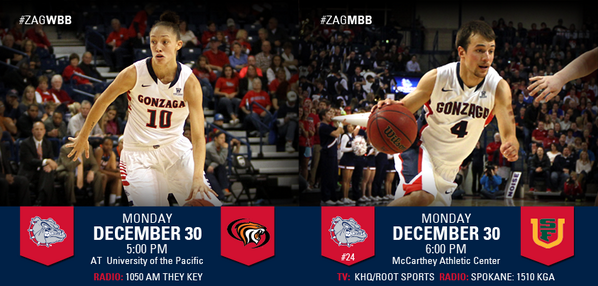 GAME DAY! @ZagWBB hits the road as they take on Pacific at 5pm and @ZagMBB hosts San Francisco at 6pm. #GoZagspic.twitter.com/9CzB4qxBAw
