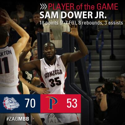 RT @GonzagaBulldogs: MBB: Sam Dower Jr. added 16 2nd half point as @ZagMBB cruised over Pepperdine in Malibu! #ZAGMBBpic.twitter.com/zPLLCsNAWU