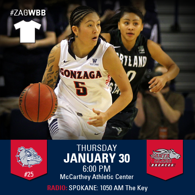GAMEDAY! @ZagWBB whites out the Kennel tonight against Santa Clara at 6pm. All fans in attendance get a FREE t-shirt!pic.twitter.com/ZnaWG5pUYx