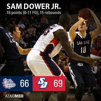 MBB | Sam Dower Jr. had his 7th career double-double but @ZagMBB fell on the road to USD. #ZAGMBBpic.twitter.com/c1saAeUPSC