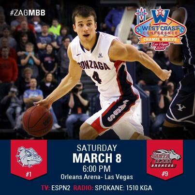 @GonzagaBulldogs: GAME DAY! No. 1 seed@zagmbb takes on No. 9 Santa Clara at 6pm. Watch live on ESPN2.#GoZags pic.twitter.com/QPt3umPZvr”