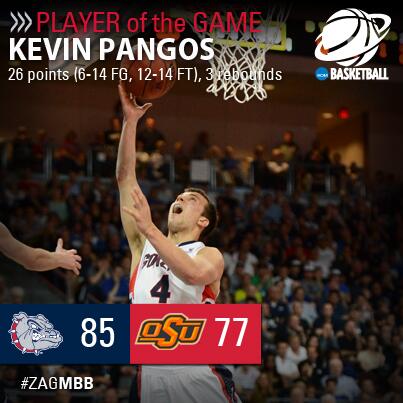 @GonzagaBulldogs: Pangos w/game-high 26pts, ices game with 12/14 FT!@ZagMBB advances over Oklahoma State!#ZAGMBBpic.twitter.com/U2XAYVu04I