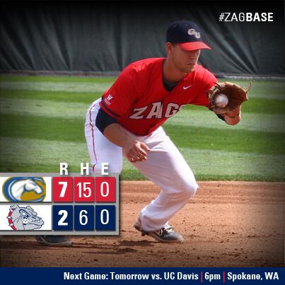 BASE | @GonzagaBaseball drops game one against UC Davis, 7-2. Game two is tomorrow at 6pm.pic.twitter.com/rBLpiJhFJe