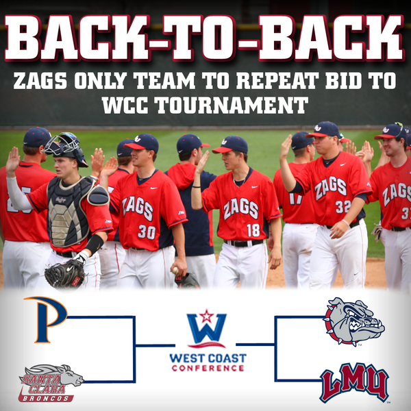 Back-To-Back! @GonzagaBaseball lone team to return to WCC Baseball Championship Tournament! http://goza.gs/1jO30pn pic.twitter.com/ELL2F396wj