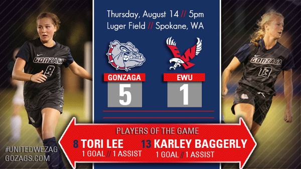 @zagswsoccer defeats EWU 5-1 in their opening exhibition game! Next home game: August 29th vs. Montana | 2:30pmpic.twitter.com/XZgBATegHs