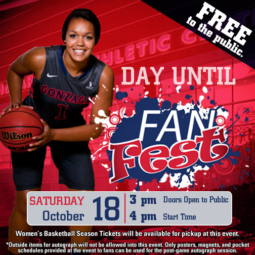 Only one day! Join @ZagWBB at 4pm tomorrow for Fan Fest. See the 2014-15 team for the first time this season!pic.twitter.com/Lilzd3xQAU