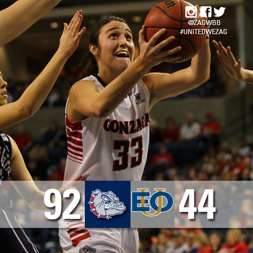 .@ZagWBB beats Eastern Oregon University 92-44! #UnitedWeZagpic.twitter.com/YxcickWqDU