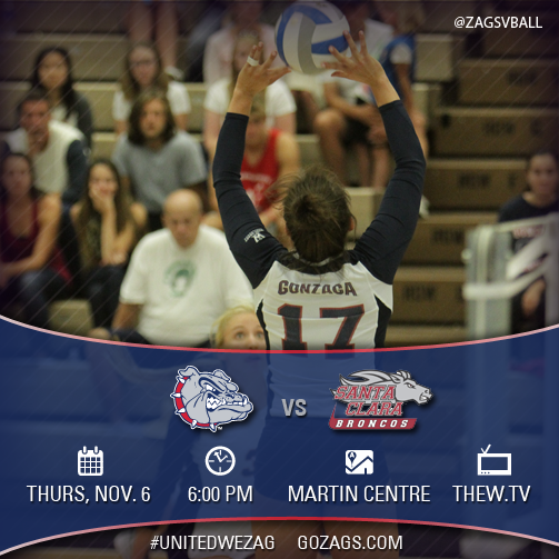 GAMEDAY! @ZagsVball hosts Santa Clara tonight at 6pm! Come out and enjoy $1 hot dogs at the concession stand!pic.twitter.com/DOzPkXeS4E