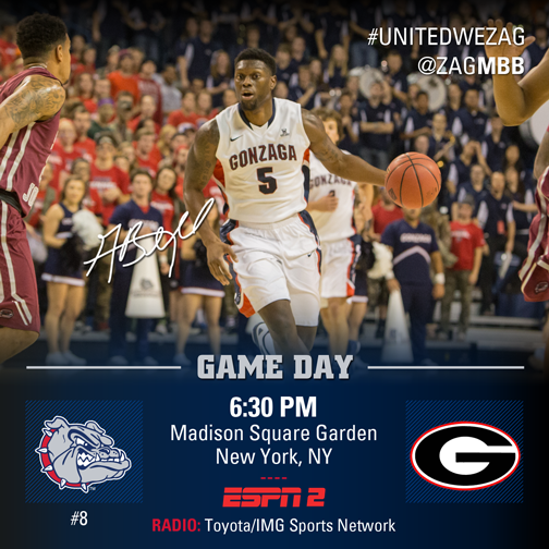 GAMEDAY! @ZagMBB plays in the Big Apple tonight against Georgia at 6:30pm PST! Watch live on ESPN2! #UnitedWeZagpic.twitter.com/2pRO8Fkv00