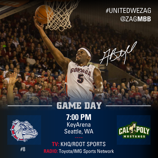 GAMEDAY! @ZagMBB is in Seattle for 12th annual Battle in Seattle! Zags take on Cal Poly tonight at 7pm! #UnitedWeZagpic.twitter.com/4TattwS1xs