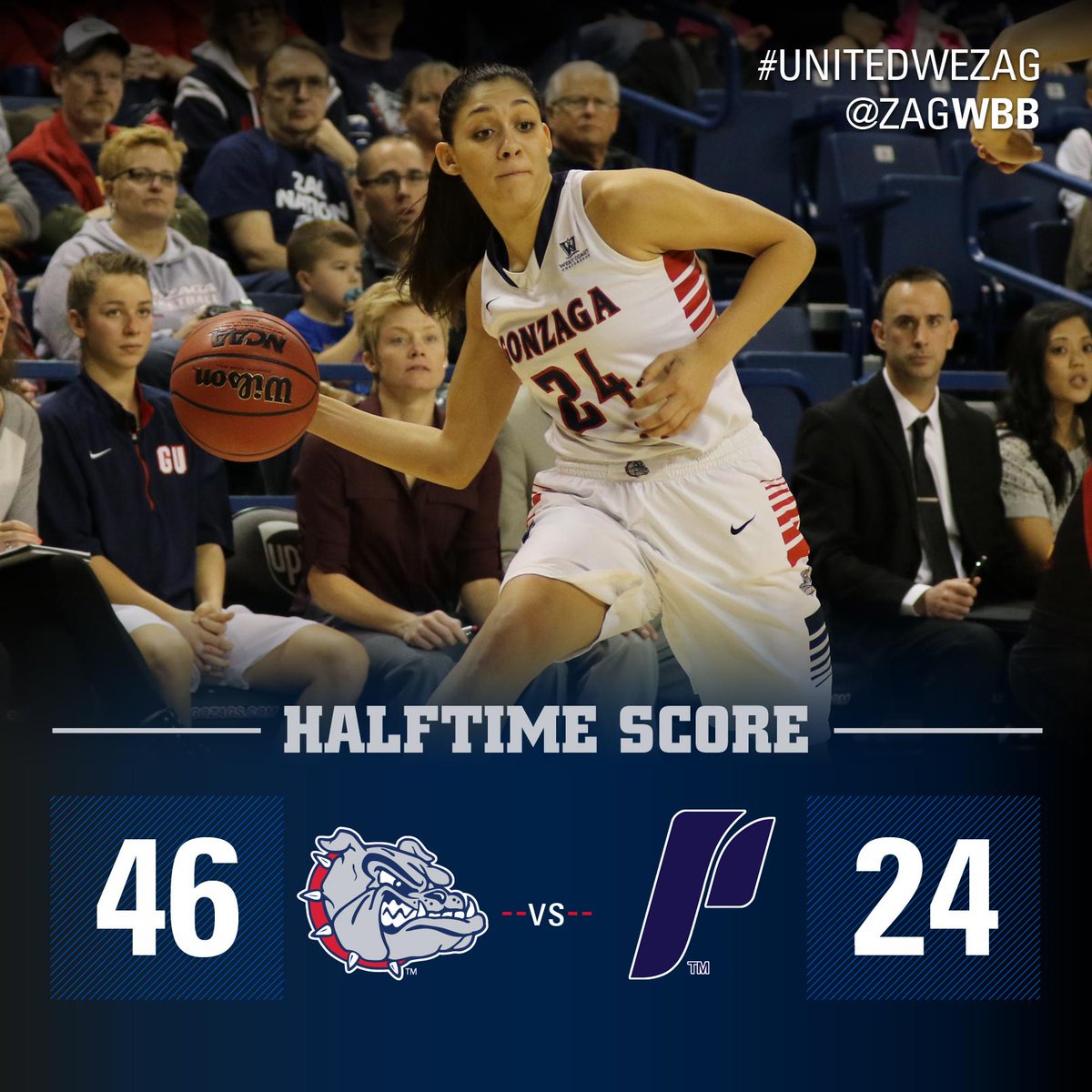 @ZagWBB leads Portland at halftime, 46-24. Keani Albanez leading all scorers with 12 points. #UnitedWeZagpic.twitter.com/Ls9R7vzz8X