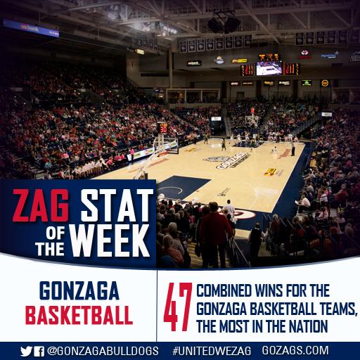 .@ZagWBB and @ZagMBB have combined for the most wins in the nation, bringing us the Stat of the Week #UnitedWeZagpic.twitter.com/T6omZToNDJ