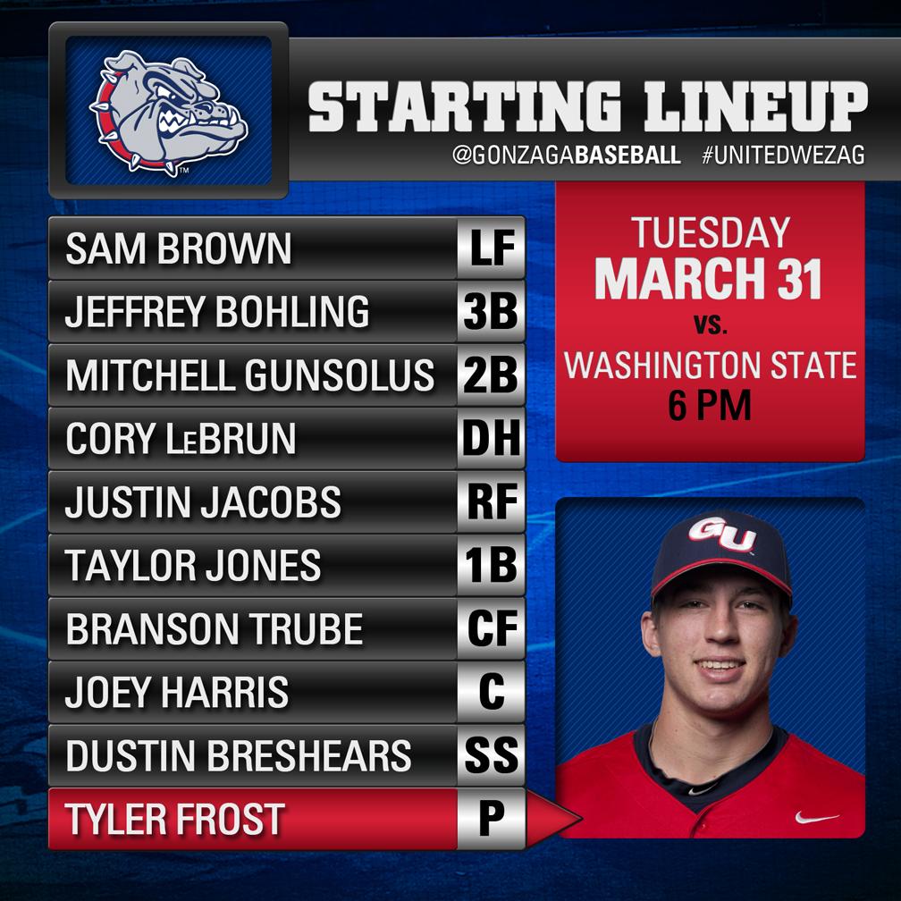 The lineup is in! Here are your starters for tonight's @GonzagaBaseball game against WSU! #UnitedWeZagpic.twitter.com/MsnWQL4EJY