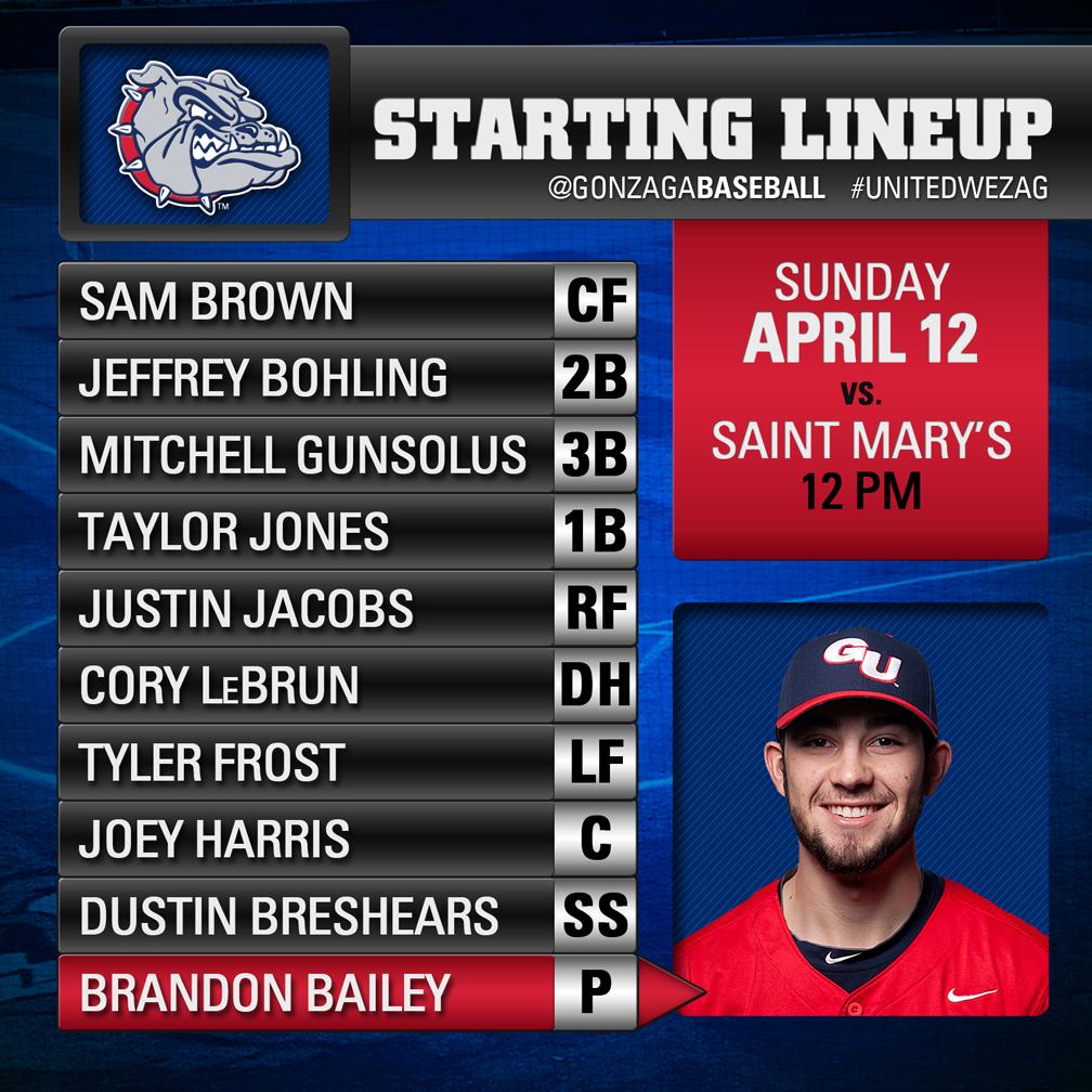 Zags look to sweep Saint Mary's today at Noon. Here's the starting lineup for @GonzagaBaseball! #UnitedWeZagpic.twitter.com/CZHv3G2tZf