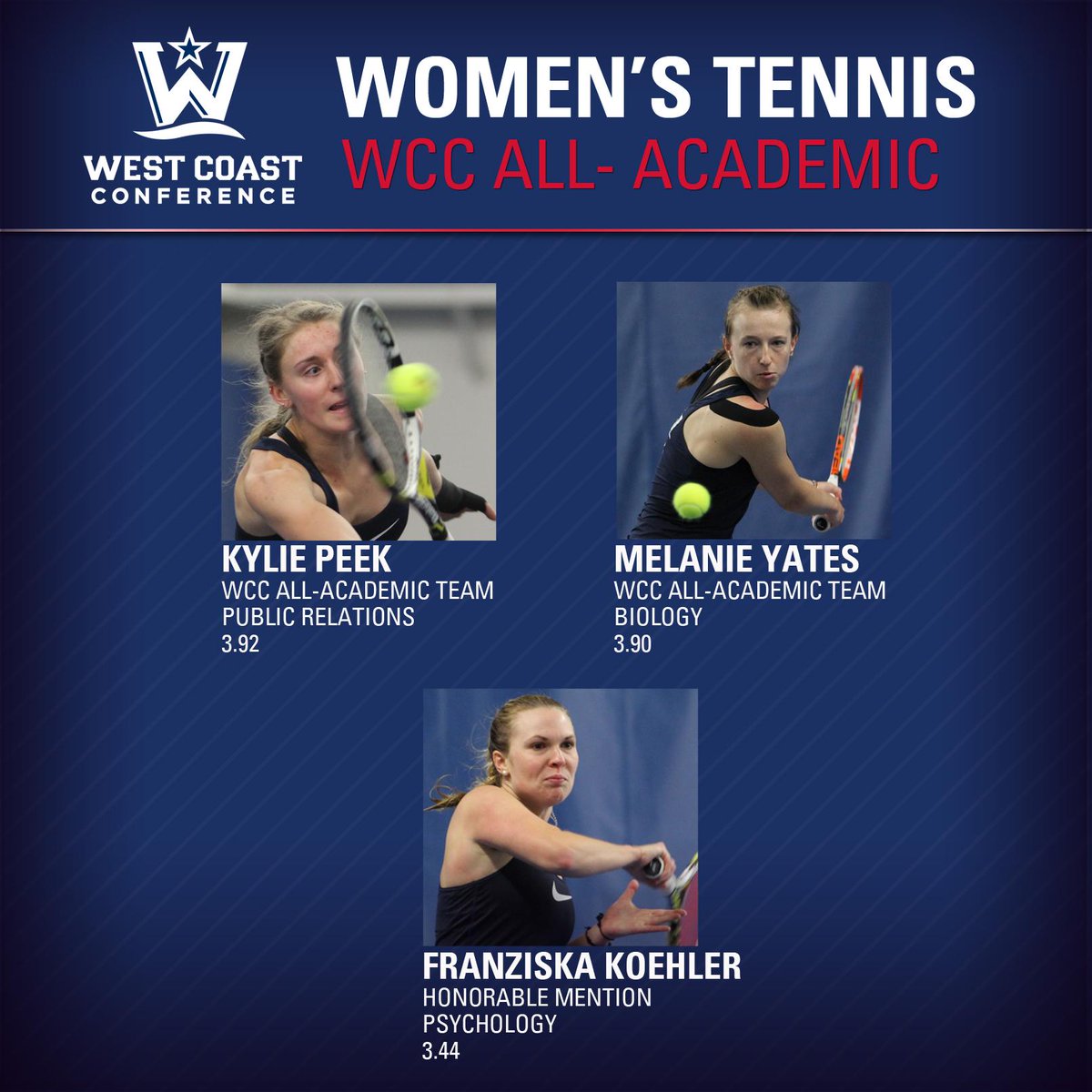 Three Zags from @ZagWTennis received WCC All-Academic honors today. Congrats! #UnitedWeZagpic.twitter.com/JboKcxtVAY