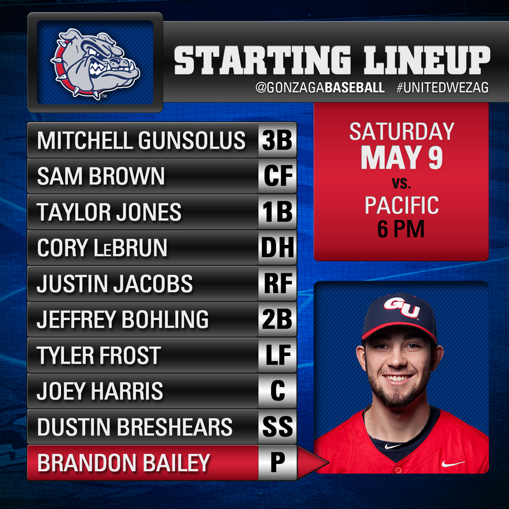 Here's the starting lineup for @GonzagaBaseball tonight! #UnitedWeZagpic.twitter.com/lXCzsdPD0G
