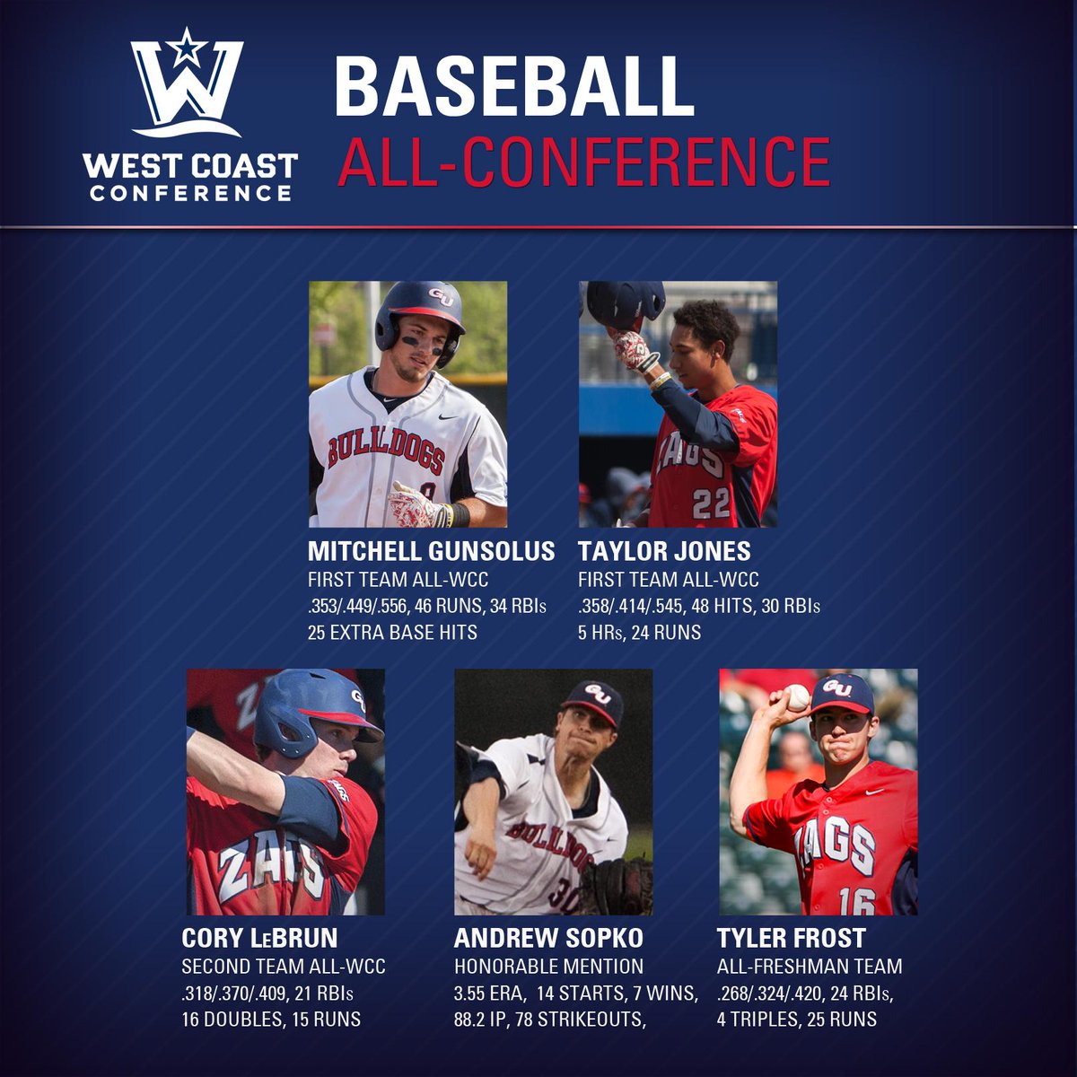 More WCC Honors for @GonzagaBaseball. Congrats everyone! #UnitedWeZagpic.twitter.com/v9eQTRU9Dl