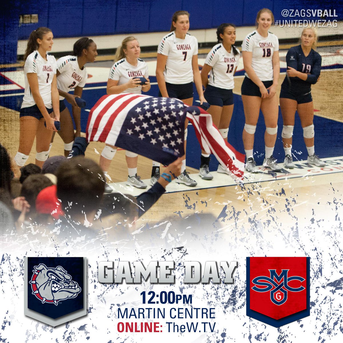 GAMEDAY! @ZagsVball hosts Saint Mary's at noon! It's Kids Day! $2 admission & hot dog for first 75 kids 12 & under!pic.twitter.com/QmoC3bOitE
