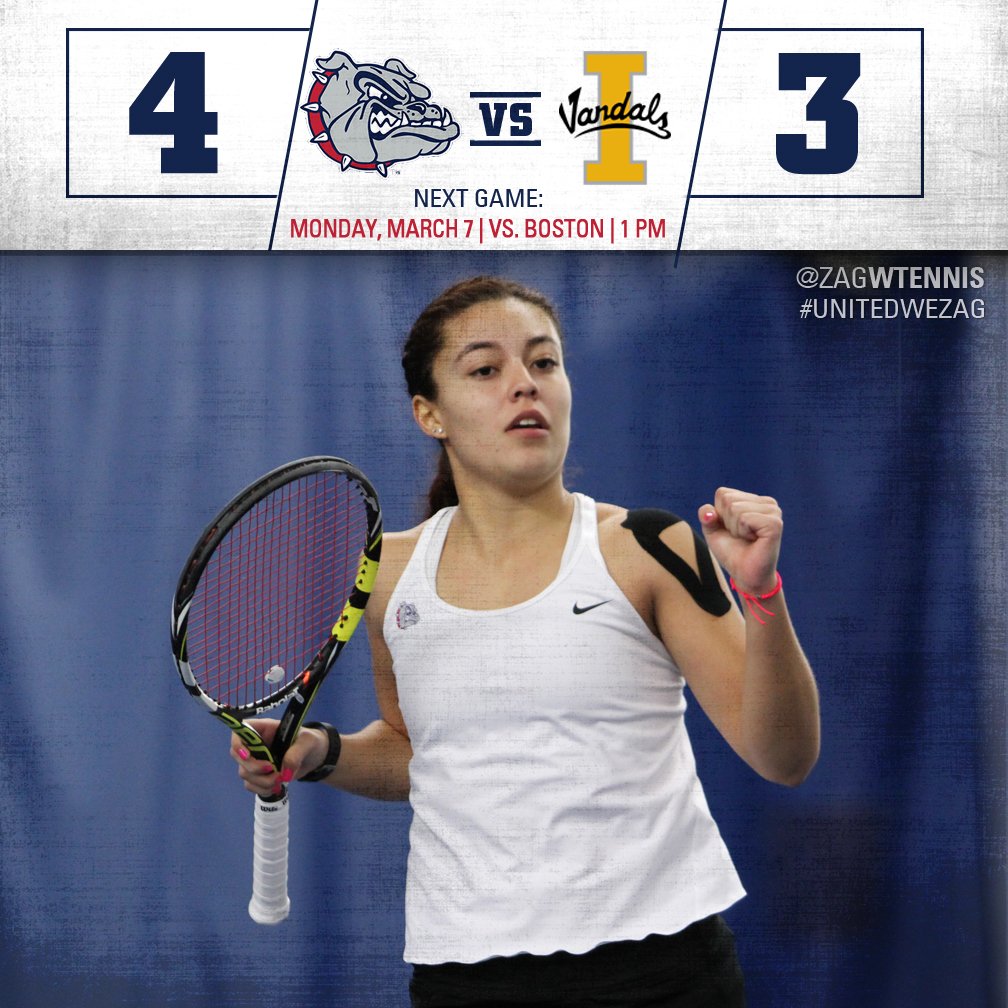 THAT'S FIVE! @ZagWTennis wins their fifth in a row with a W over Idaho. Great match, great win! #UnitedWeZagpic.twitter.com/4tPLnz50wx