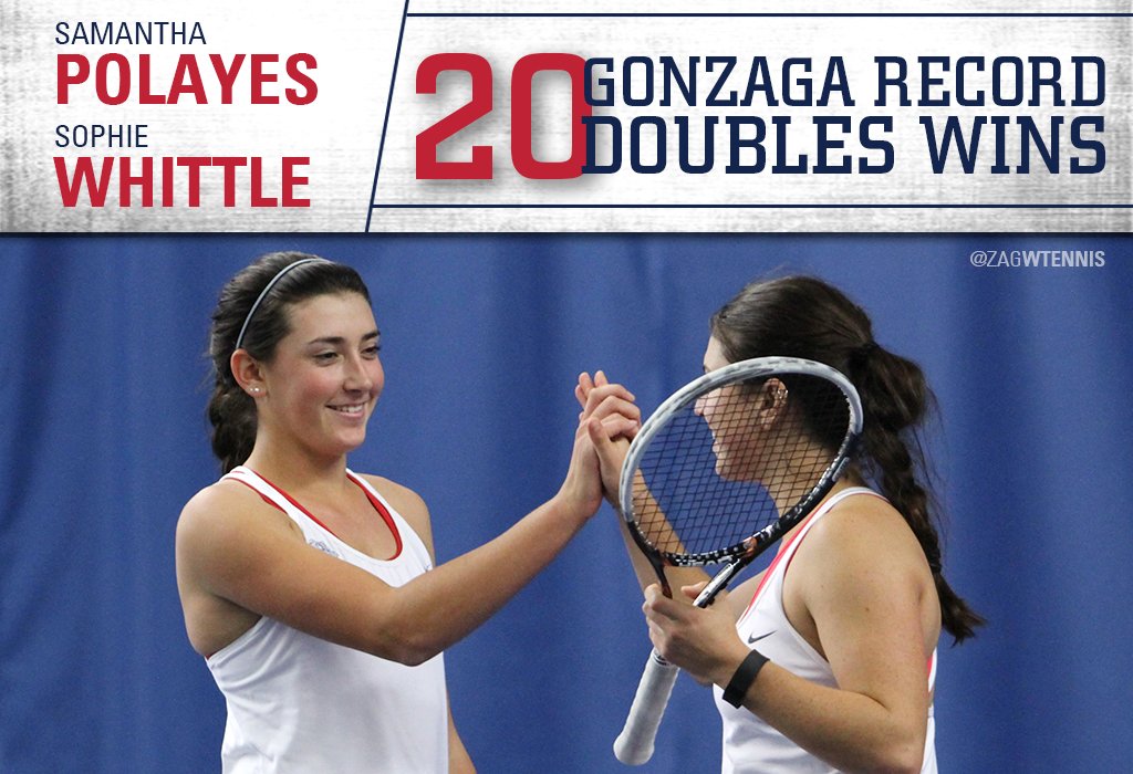 A school record 20 wins for Polayes/Whittle of @ZagWTennis! Great job! #UnitedWeZagpic.twitter.com/eOvxmbyWE2