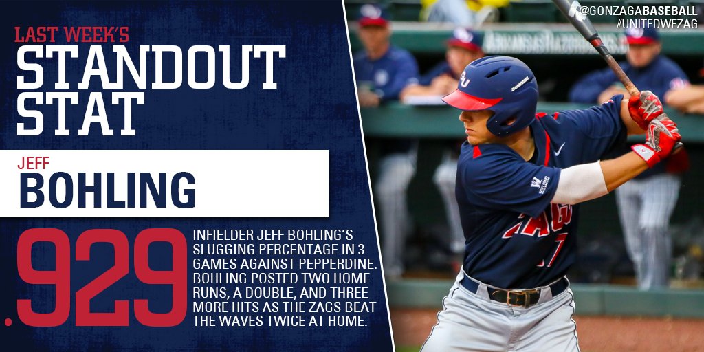 Last week's standout stat goes out to Jeff Bohling of @GonzagaBaseball who literally crushed it last weekend!pic.twitter.com/9BeZdiw4zV