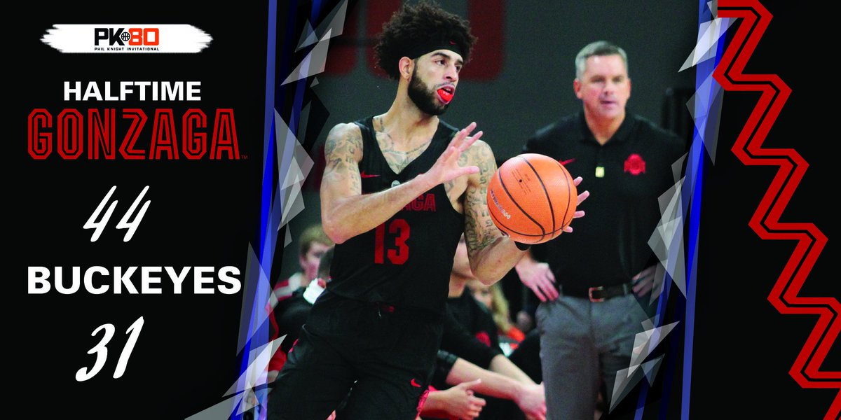 HALFTIME: Zags hold Ohio State scoreless over the last 7:48 of the half. GU is currently on an 11-0 run. Josh Perkins with a game-high 15 points with 5 three-pointers. Johnathan Williams has 11 points.pic.twitter.com/9HD6jEKSbD