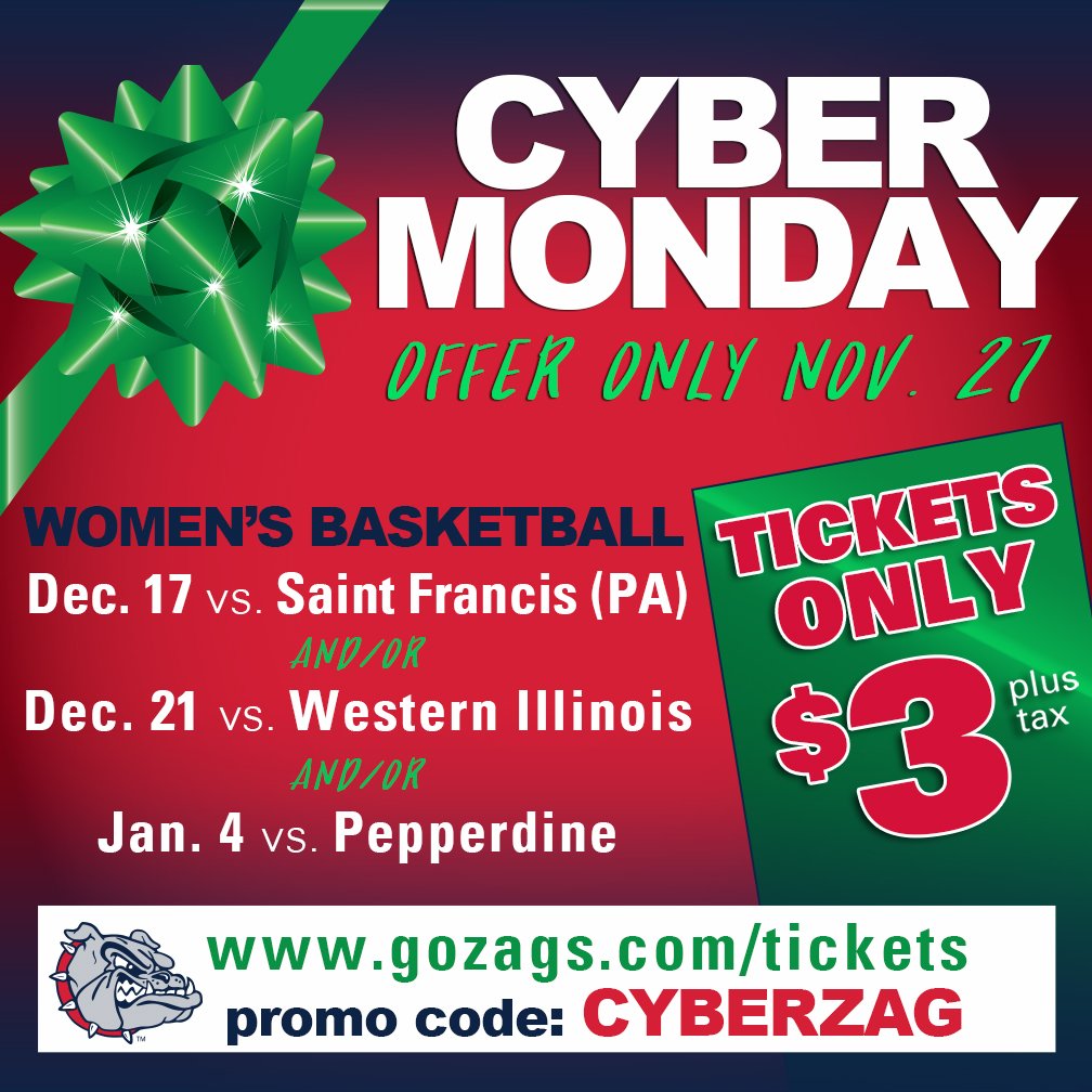 Don't forget there's a special Cyber Monday sale for select @ZagWBB games on Monday, November 27th! All tickets, including lower bowl, start at just $3!pic.twitter.com/8pUI9Fo3xx