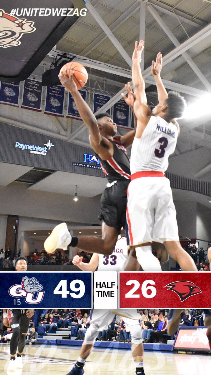 HALF: @ZagMBB knock down eight 3-pointers in the first half to take a 49-26 lead over Incarnate Word at the break. Perkins leads all scorers with 13 points on 5 of 5 shooting from the field. #UnitedWeZagpic.twitter.com/uumToR6kVi