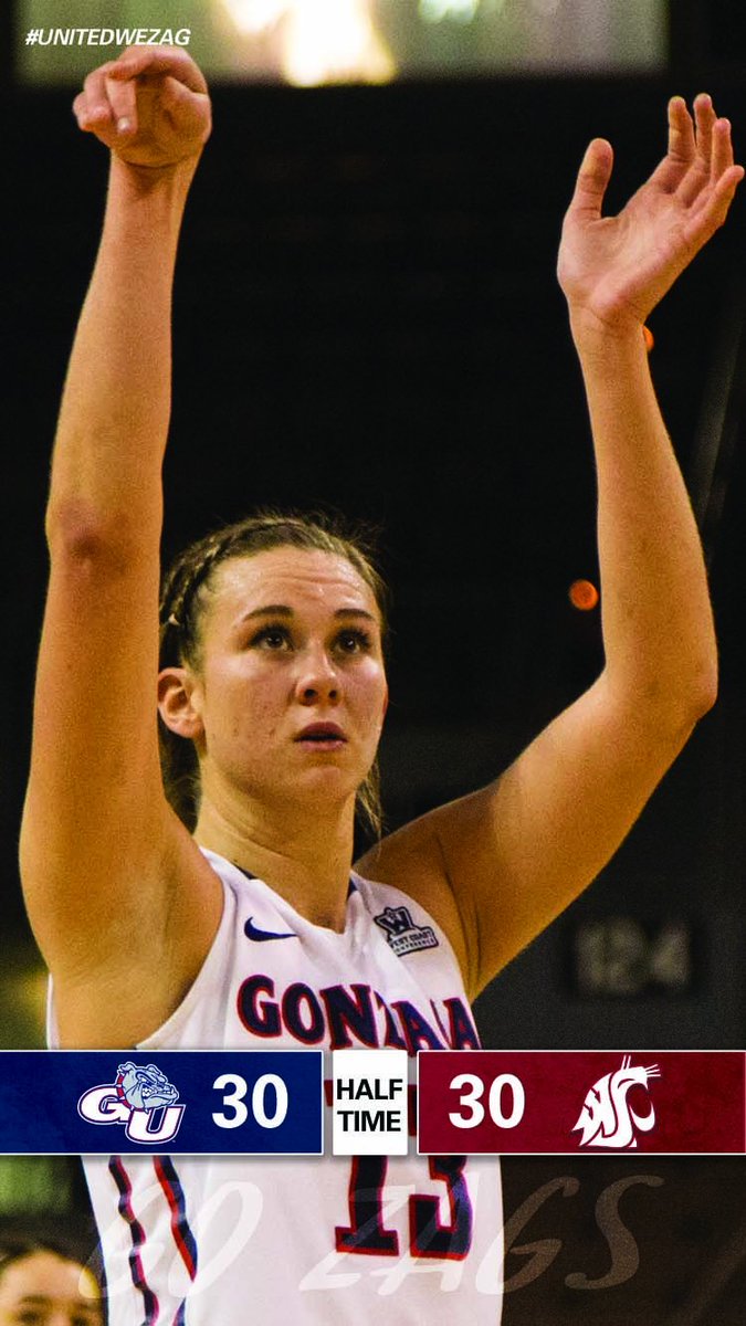Good one in Pullman | WSU scores four late to tie at half | Barta with 15 points on three 3's | Rice adds six | both teams battled early turnovers and fouls | Smith w/ 7 rebs | GU shooting 44% | 3-3 3PT #UnitedWeZagpic.twitter.com/JAvtQXRTge