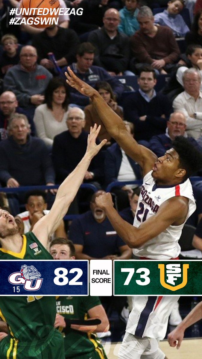 FINAL: @ZagMBB finishes with five double-digit scorers in the win. Killian Tillie and Johnathan Williams both had 16 points. #UnitedWeZagpic.twitter.com/7D9t6XYbjK