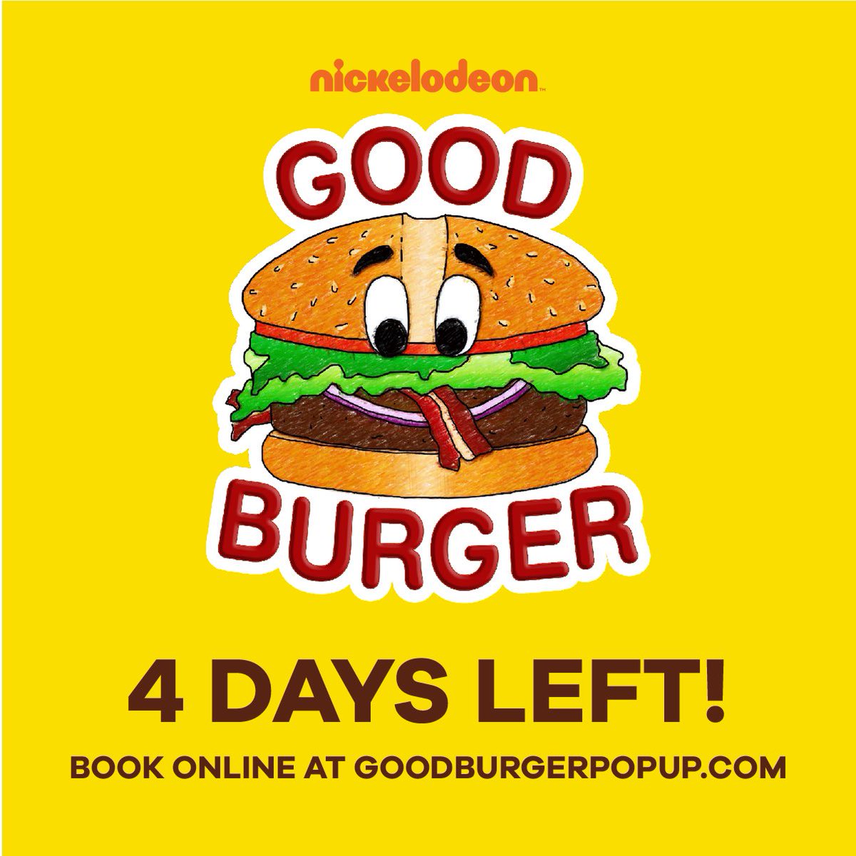 GUYS, last week to visit the Good Burger Pop-Up before it’s gone! Visit http://Goodburgerpopup.com for tix.