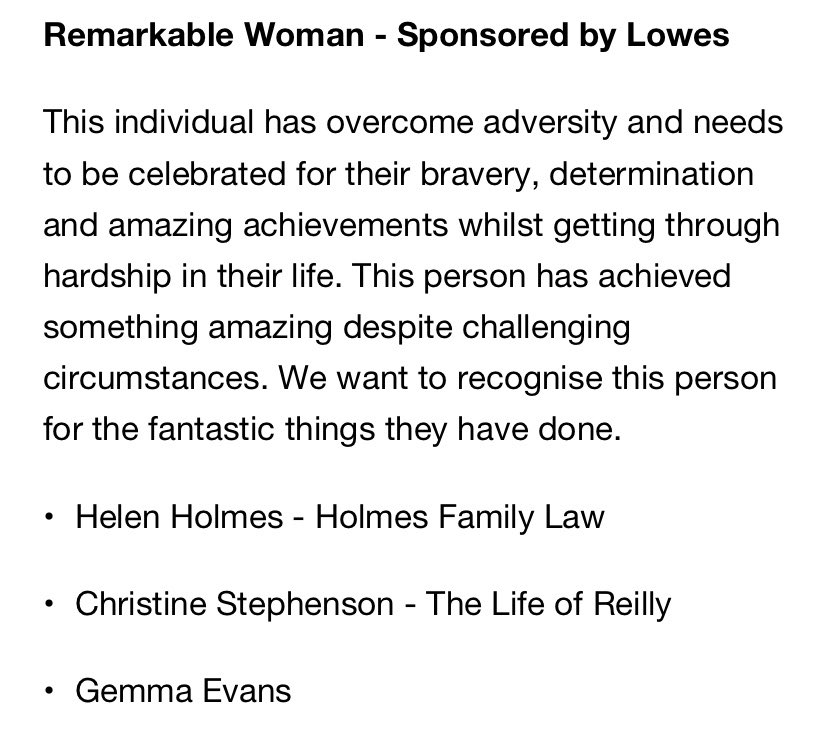 Blimey I’m a finalist in the Remarkable Woman category at the Glass Slipper Awards