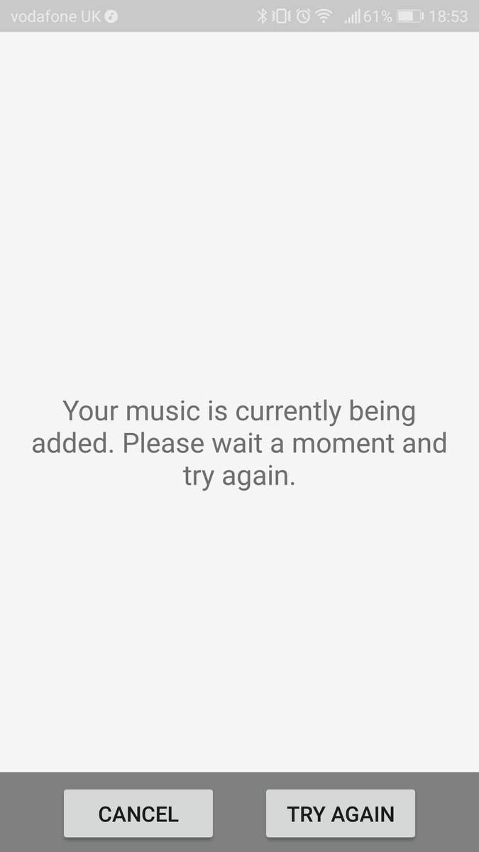 @GooglePlayMusic I bought the new ghost album, and every time I press listen it comes up with "adding your music please wait, and try again later".... But it never does work and never adds it. What can I do to fix this as it annoying as I've already payed for it!