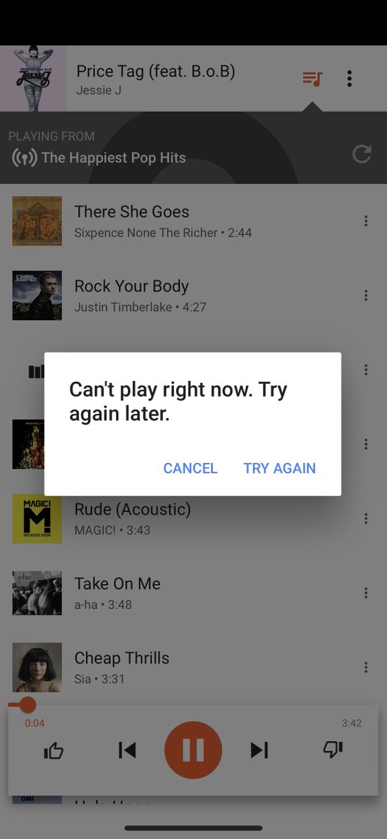 Same problem, I already uninstalled the app and re installed because of “cache” or maybe it was something else, but no! It doesn’t work at all. How do I fix it? It is really annoying, I want to play my music now and not later