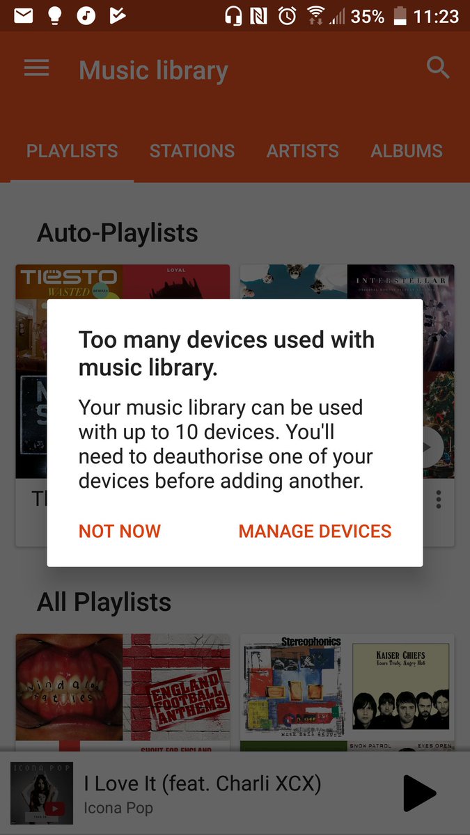 @GooglePlayMusic your app is broken. I don't even have 5 connected devices. Web chat offline, call back says they can't take my call. Please fix. Looks like loads of people are having same issuepic.twitter.com/mf4XbkOoVc