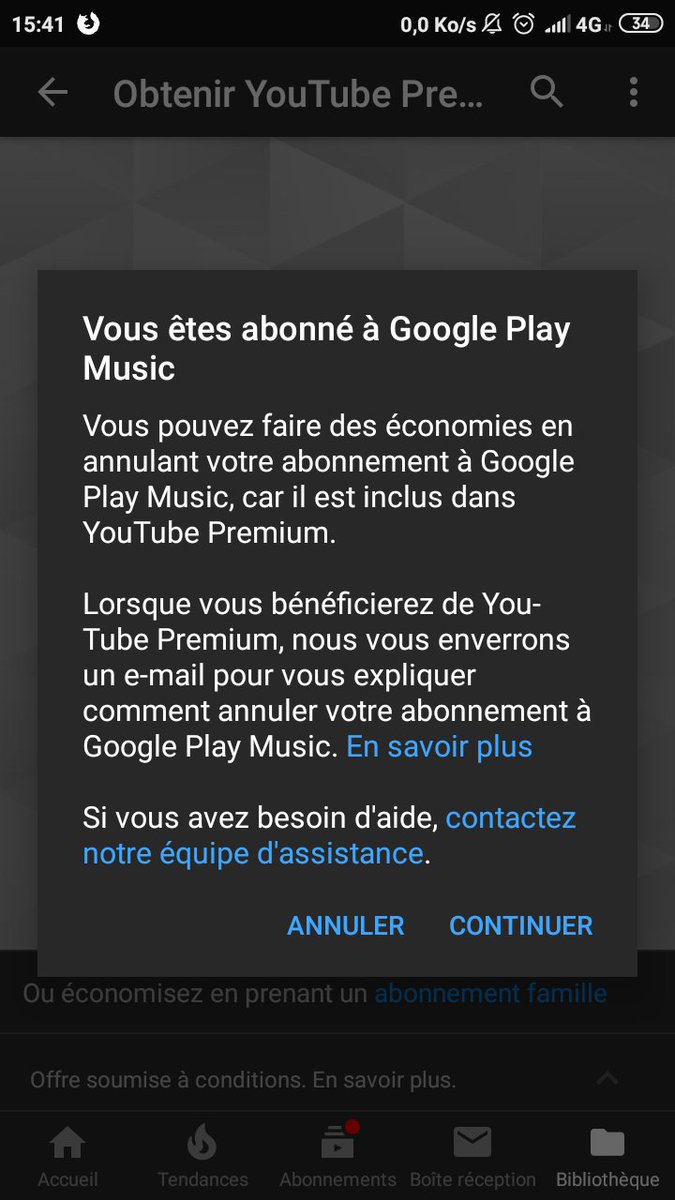 J'ai un abonnement GOOGLE Play Music est-ce que j'ai accès à YouTube Premium ?