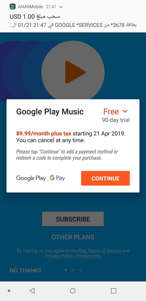 Hey Google i just get the 3 months free from Google play music and i put my Vissa and it did takes 1$ but it has fail to let me in #Error it sayspic.twitter.com/i59IDmnW7w