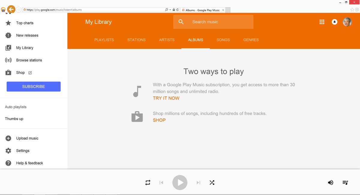 @GooglePlayMusic - OK, Google identity issue. My wife, who has never logged into Chrome on my laptop, is the account showing.