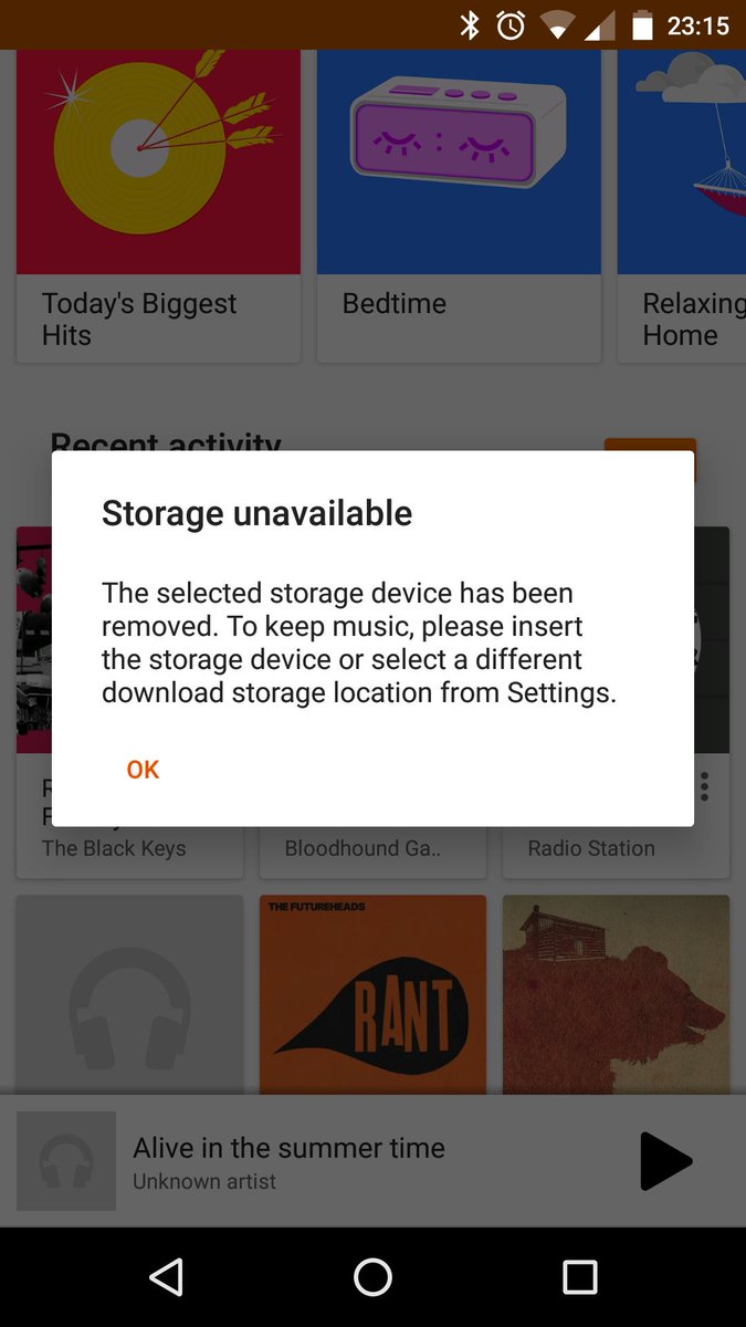 @GooglePlayMusic I can no longer download music or change storage location since updating to Android 6.0. Very frustrating.