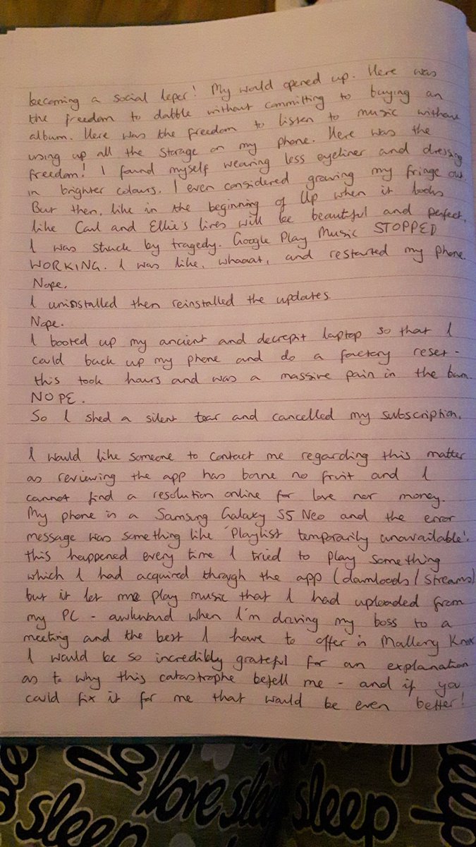 @GooglePlayMusic when all else fails, send a letter! #googleplaymusic #pleasehelppic.twitter.com/kOGaRJO88l