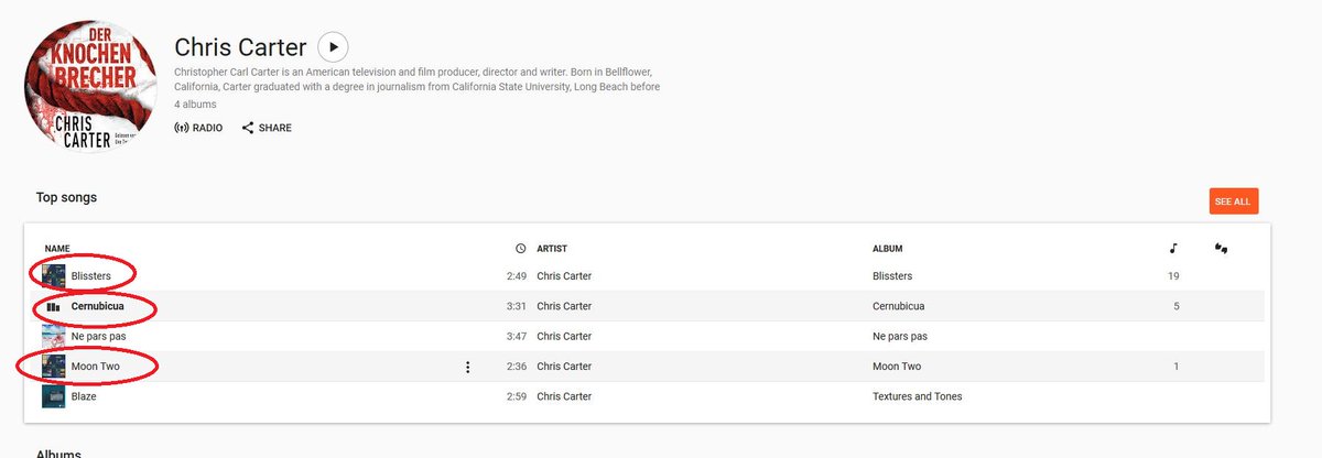 Not a matter of availability - you're giving credit to the wrong artist!! I've reported bad metadata for each of these & nothing has changed. @chris_carter_ created the songs I've circled. I've reported these a few times you haven't fixed them. Not fair to artists OR subscribers!pic.twitter.com/Rh4Hkxj66p