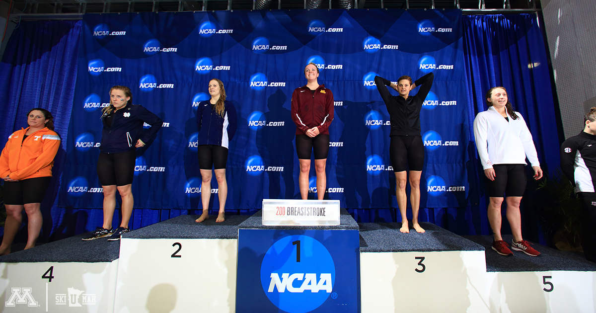 Women's 200 Breast Lindsey Kozelsky takes the top spot for the U!