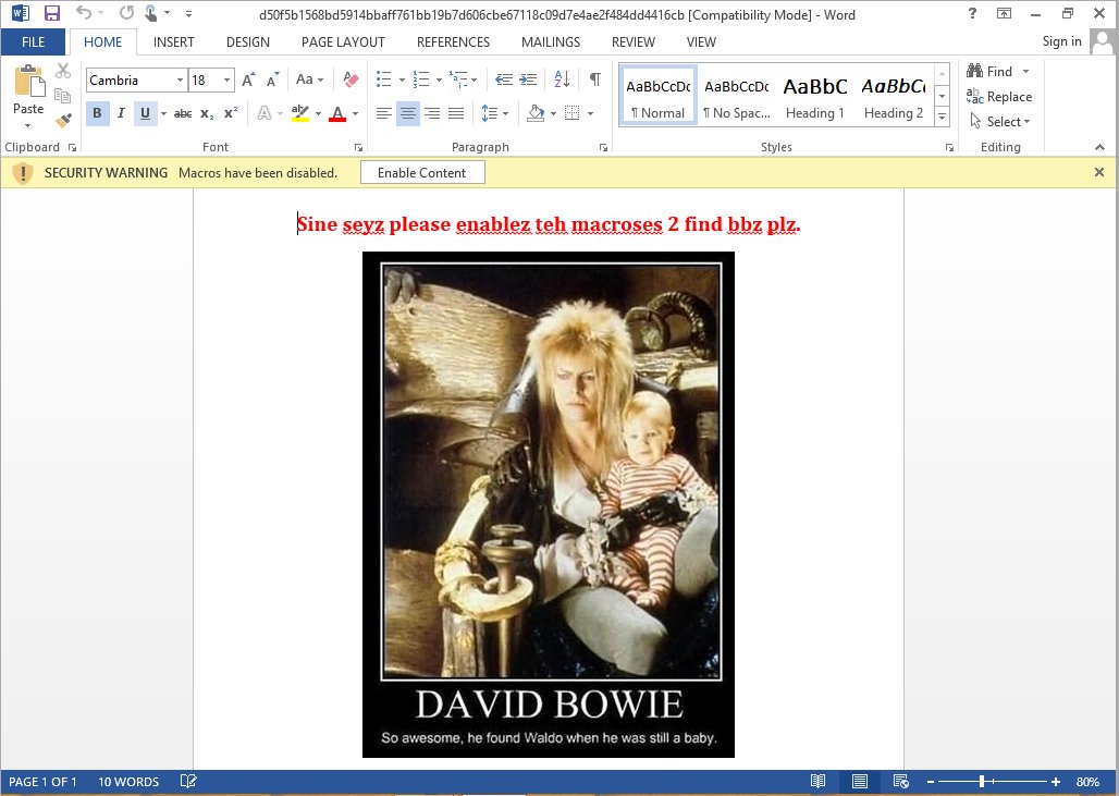 A macro doc with a picture of David Bowie and uses #PowerShell to print a cow?🐮 https://ghostbin.com/paste/awr6x . #TheStuffYouFindOnVT pic.twitter.com/5PNWkda5n8