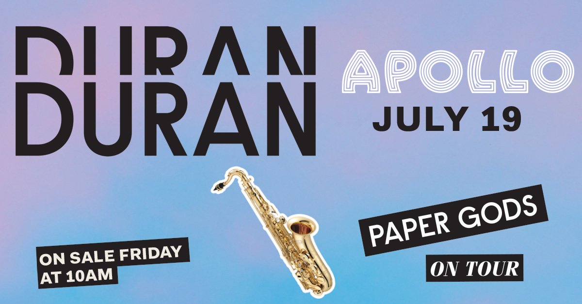 Don’t miss Duran Duran @ the Apollo Theatre 7/19! Tix on sale tomorrow at 10am: http://bit.ly/1W21tEd [sponsor]pic.twitter.com/Pro1FbtXfs