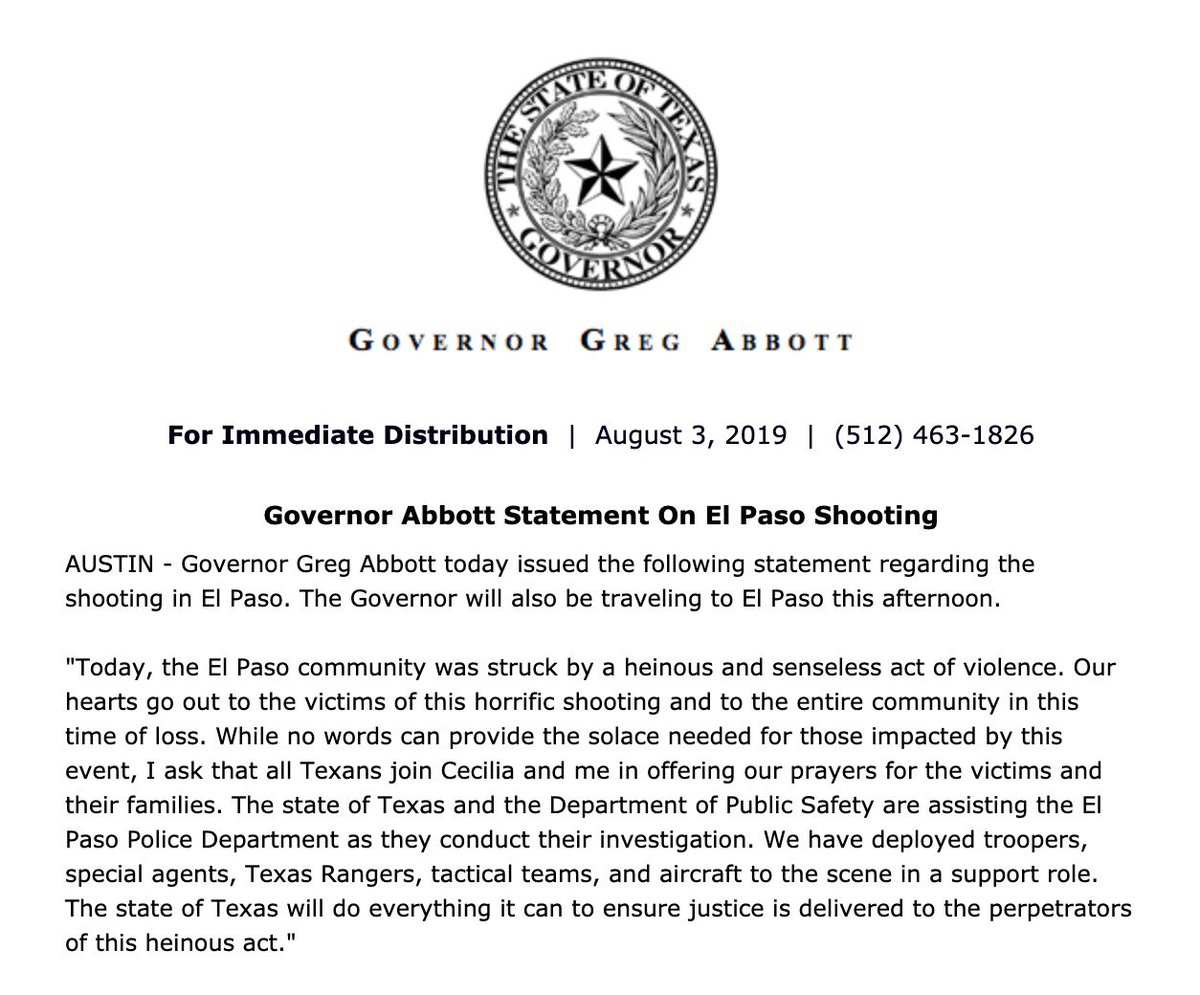 Nowhere in your statement do I see anything about you wanting to prevent future shootings like these. Typical "take care of the current situation, get the perpetrators, pray for the families" shtick.
