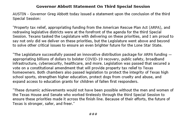 Official news from the Office of Texas Governor Greg Abbott. You can follow the governor's personal feed