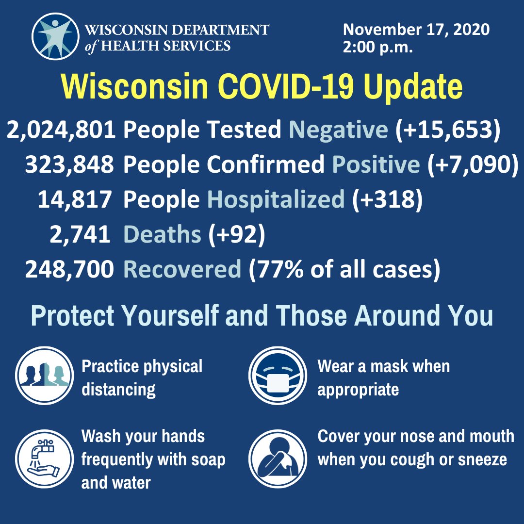 Today we reported 92 of our fellow Wisconsinites have passed away from COVID-19. 92 people who were somebody’s best friend, mother, father, co-worker, or neighbor. Our thoughts are with their loved ones. Please, Wisconsin, don’t risk it. Stay home. Stay safe. Save lives.https://twitter.com/DHSWI/status/1328790110503120896 …