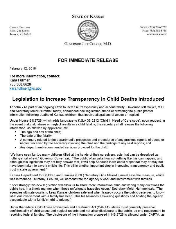 Legislation to Increase Transparency in Child Deaths Introduced #kslegpic.twitter.com/e0uT8LwM4H