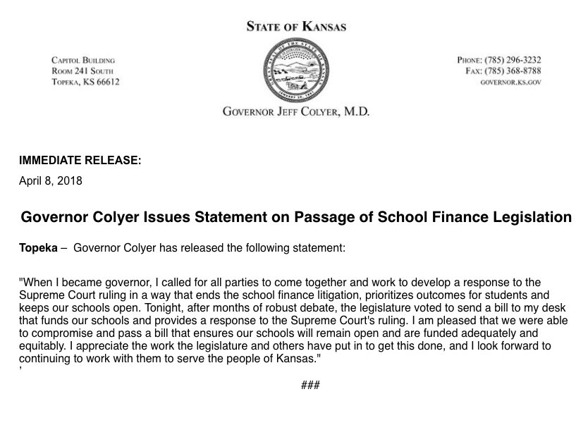 Governor Jeff Colyer‏ @GovJeffColyer Apr 7