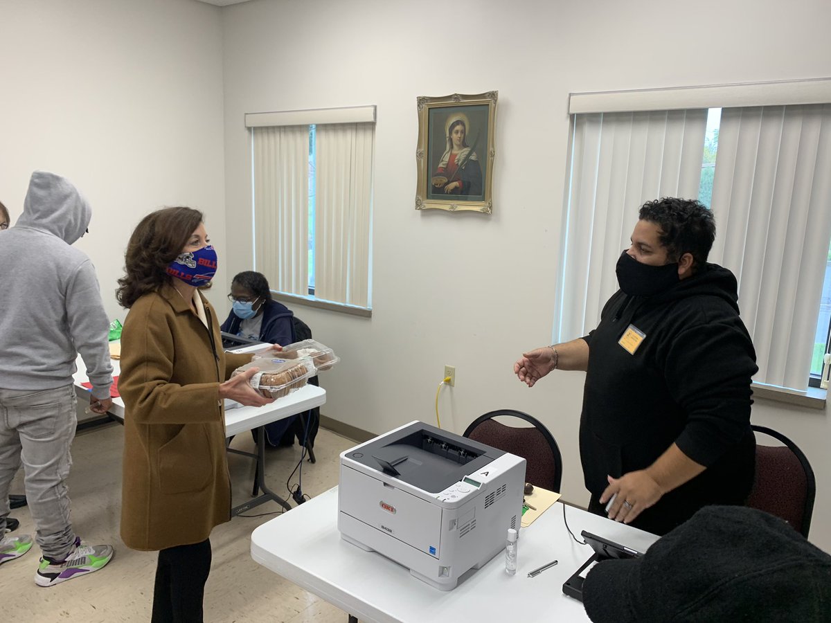 Thank you to all braving long lines to vote early across NYS. We especially owe our poll workers thanks for being on the frontlines of Democracy - brought them donuts & muffins at St. Columba-Brigid in #Buffalo. Find a polling place to #Vote. http://voterlookup.elections.ny.gov pic.twitter.com/UFV55PZLik